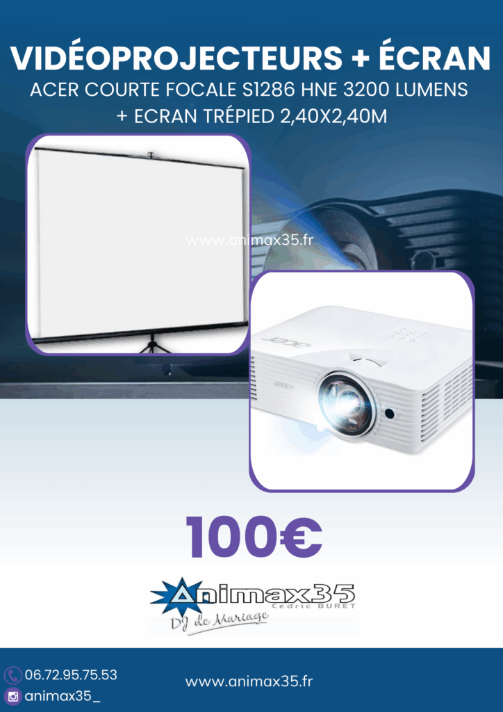 – Un vidéoprojecteur ACER COURTE FOCALE S1286 HNE 3200 Lumens